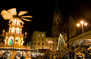 Vi återfinner julmarknaden på olika ställen i staden dels Meklenburggatan och inne på torget i gamla stan men också på slaktarens torg. Det finns hantverk och välsmakande specialiteter, en utställning av krubbor, ett speciellt aktivitetstält för barn och en stor scen med musikunderhållning brukar det också finnas. Att flanera i Schwerin är som att gå i en sagovärld. En fjärdedel av staden är täckt av vatten och på en ö i sjön ligger det pampiga sagoslottet. Även domkyrkan, rådhuset och den ståtliga teatern bidrar till sagokänslan. Så varför inte börja med en sväng längs strandpromenaden och till sevärdheterna innan affärerna och julmarknaden öppnar.