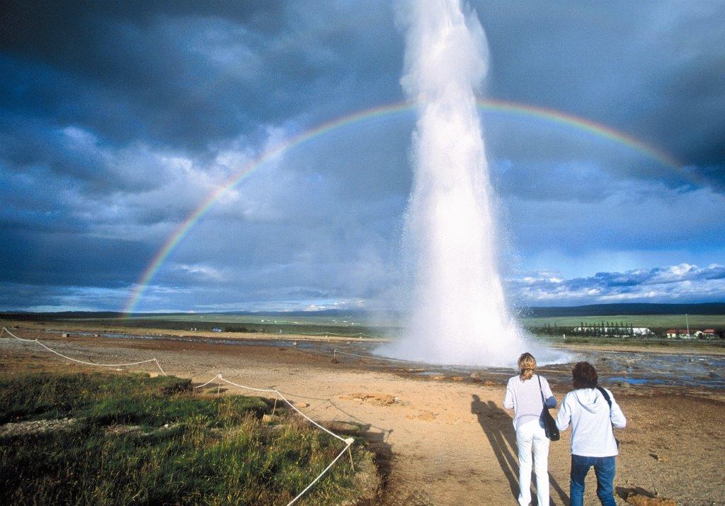 Idag erbjuder vi en heldagstur på "Gyllene Cirkeln". Vi åker till Gullfoss, ett av Islands vackraste och mest imponerande vattenfall. Man kan vid gott väder promenera ända in bakom det forsande vattenfallet.Vi fortsätter sedan till det berömda Geysirområdet där vi imponeras av Strokkur som regelbundet sprutar sitt kokandevatten 25-35 meter upp i luften. Här gäller det att vara beredd med kameran! Vi avslutar med Thingvellir där vi kan vandra på den historiska marken vid den gamla Alltingsplatsen. Här kan vi även beskåda de stora sprickorna i mötespunkten för den amerikanska resp. europeiska kontinentalplattan. Utsikten är slående imponerande och unik! Kvällen spenderas på egen hand.