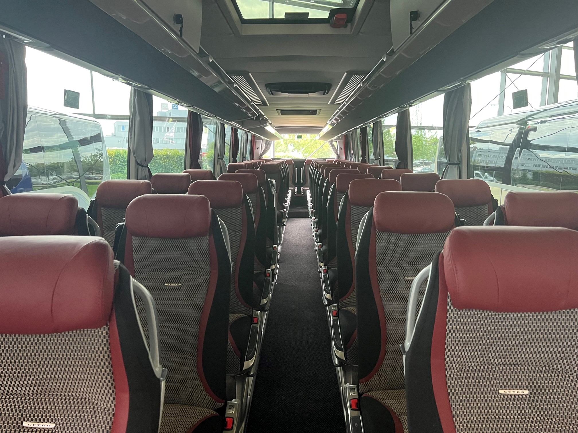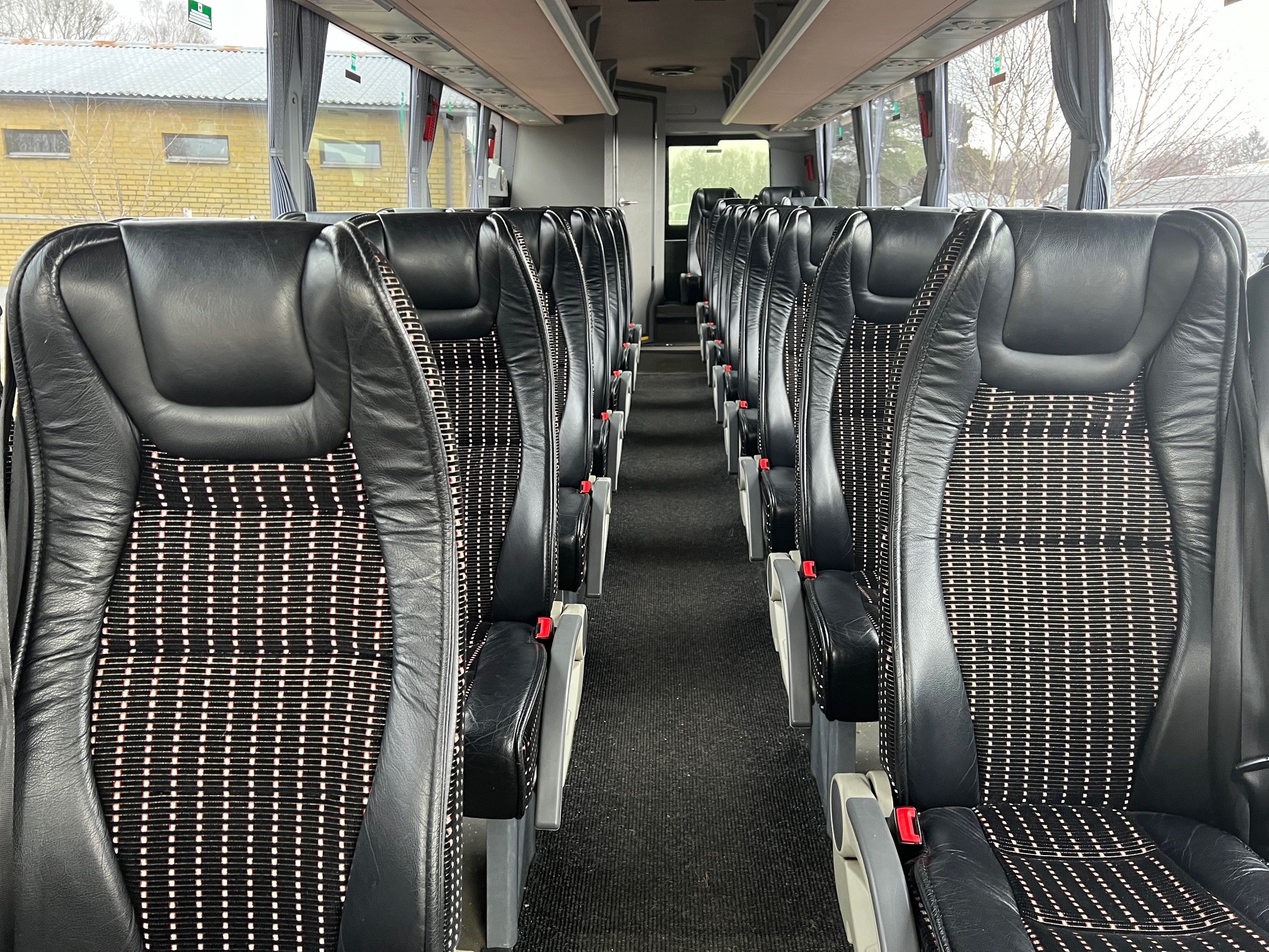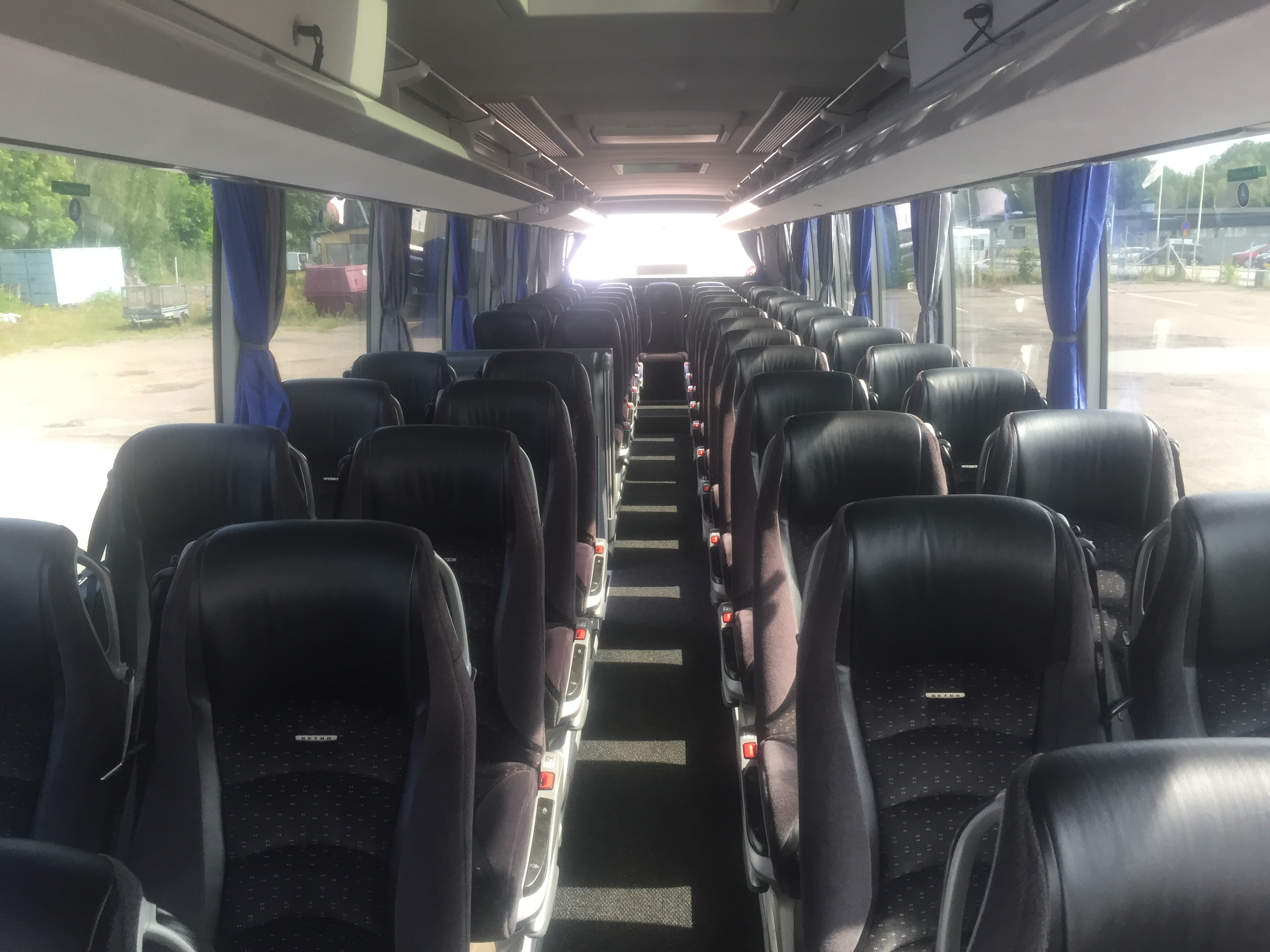 Scanior: Antal sittplatser: 55 Information: Enklare bussar med sköna fällbara säten med armstöd men saknar fotstöd.Dessa bussar har inte toalett eller kaffekokare men har däremot musikanläggning.