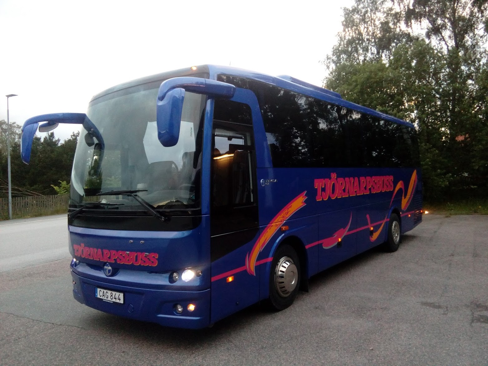 Temsa: Antal sittplatser: 32 Information: Turistbuss med fällbara säten som är skjutbara i sidled. Kaffekokare, kylskåp och toalett. Dragkrok till släp.
