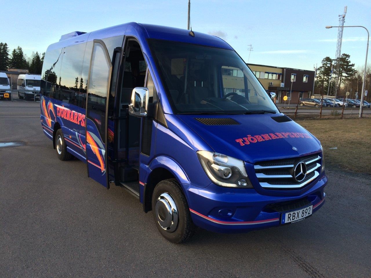 Mercedes-Benz Sprinter Atlas: Antal sittplatser: 19 Information: Turistbussar men med trängre benutrymme. Komfortabla säten som är skjutbara i sidled och med fällbar rygg. Kaffekokare, kyl och dragkrok till släpkärra. Det finns möjlighet att få bussen möblerad med konferensbord.